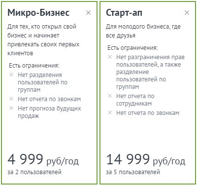 И еще 2 дополнительных дешевых тарифа для микро-бизнеса и стартапов: