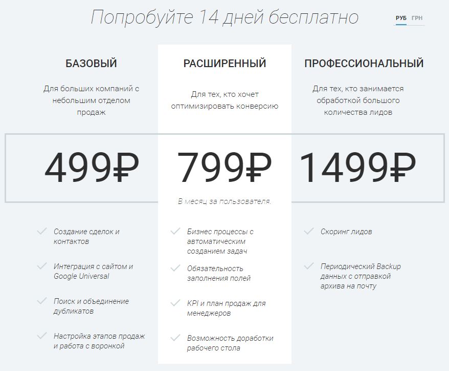 В amoCRM вы платите за каждого сотрудника. Всего есть 3 тарифа: