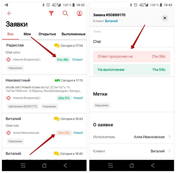 Теперь в тикете и списке заявок сотрудник видит, сколько времени у него осталось на то, чтобы ответить клиенту и уложиться в сроки. В просроченных тикетах время подсвечивается красным, в текущих — зелёным. Это позволяет быстро отсортировать тикеты и в первую очередь брать в работу горящие задачи. Раньше в карточке и списке запросов не SLA не отображался.