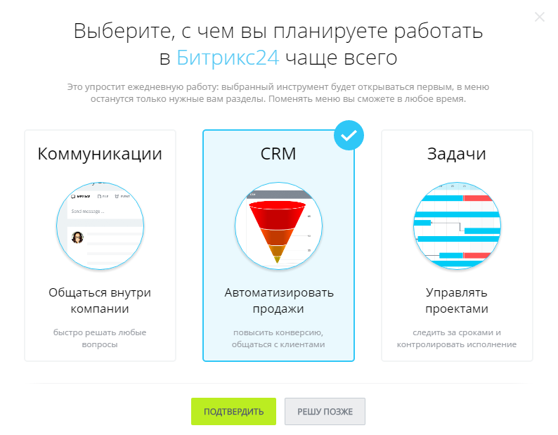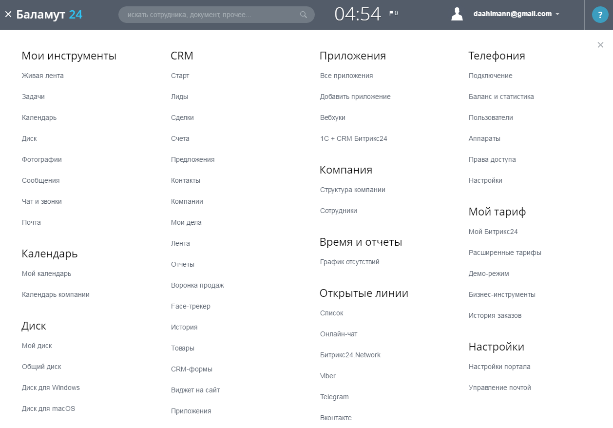 Надо сразу понять: это не только и не столько CRM. Это корпоративный интернет с внутренней соцсетью, планировщиком, платформой для видеоконференций и т.д. Тут и продажи, и управление персоналом, и телефония. CRM – только один из модулей.