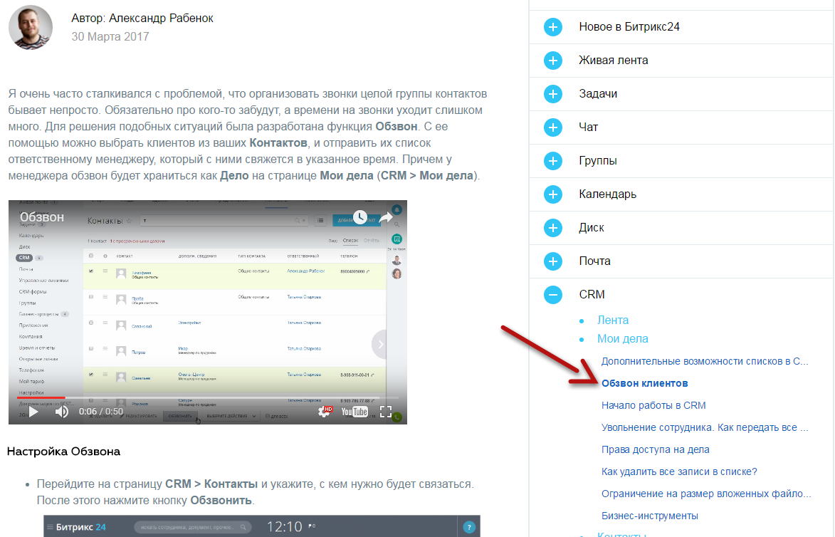 Сотрудник Битрикс24 рассказывает, как настроить обзвон клиентов. Всего таких материалов – несколько сотен