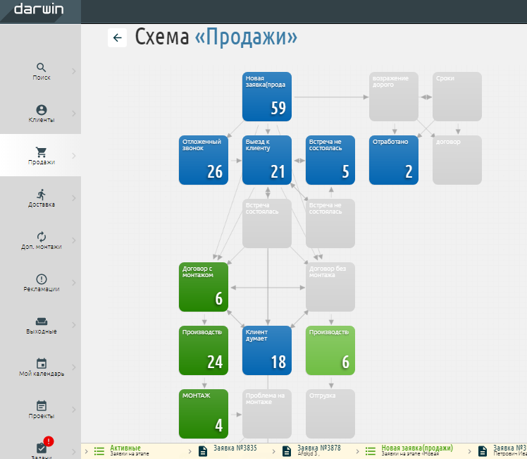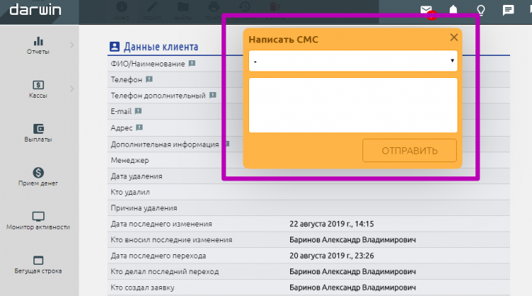 Также из этого раздела Darwin CRM происходит добавление клиента (создание новой заявки).
