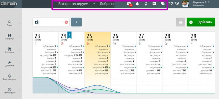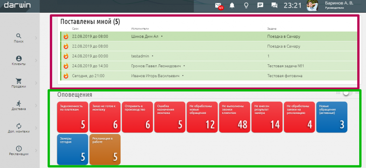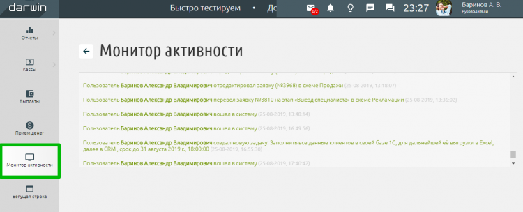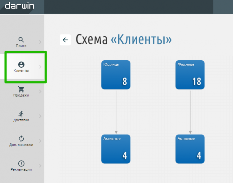 Чтобы не запутаться, обзор остального функционала Darwin CRM проведем в том порядке, в котором расположены разделы пользовательского кабинета: