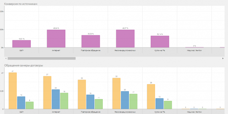 Ниже на рабочем столе отображаются метрики по поставленным задачам и по основным показателям работы фирмы.