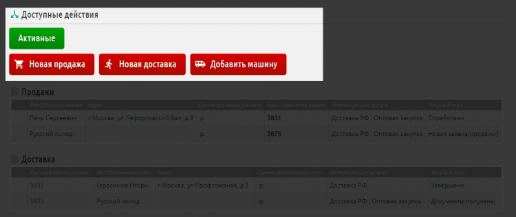 Ниже выводится список доступных действий, которые можно совершить: перевести в статус активных, произвести новую продажу и т.д.