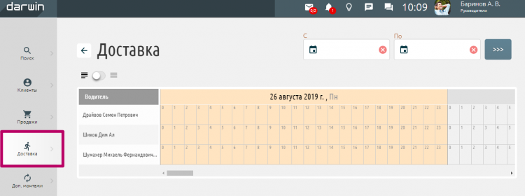 Раздел содержит информацию по доставкам и водителям, оказывающим транспортные услуги.