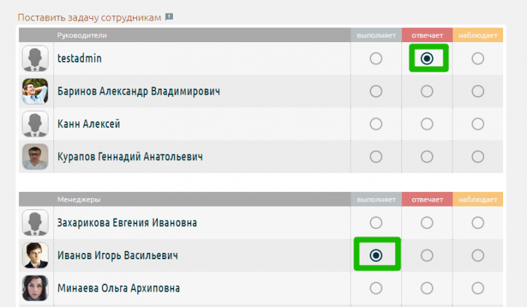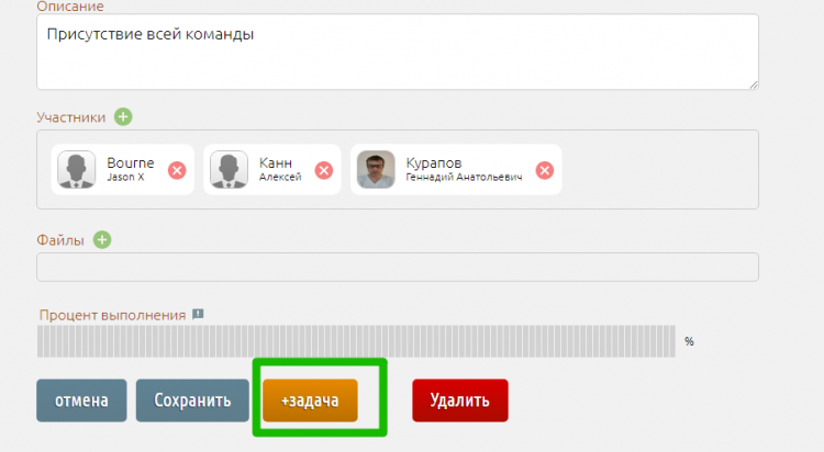 Здесь же можно поставить новую задачу, назначить исполнителей и ответственных.
