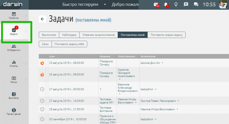 После постановки задачи Darwin CRM автоматически создаст отдельное задание для каждого исполнителя.