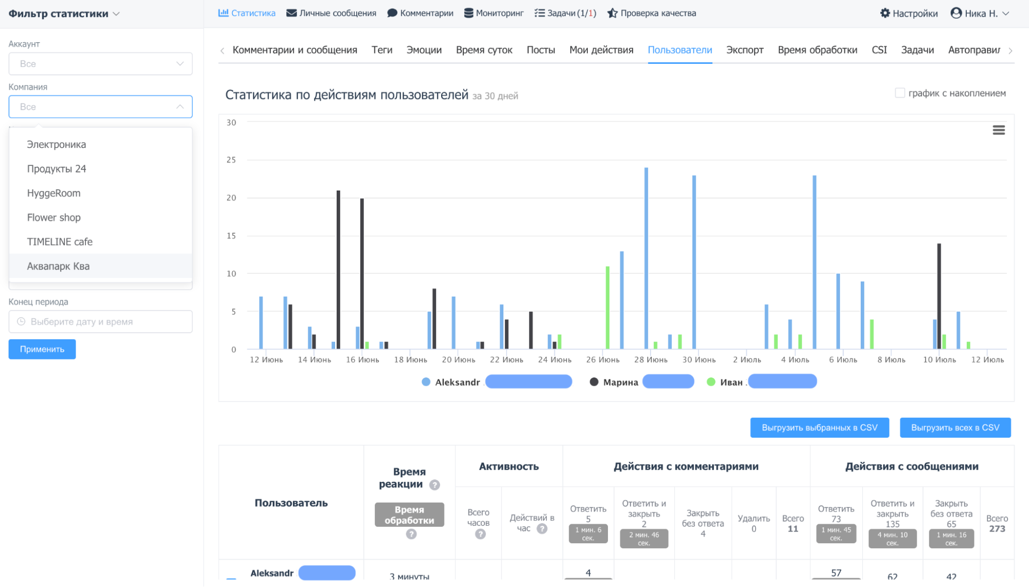 Если вы разделите рабочее пространство с помощью компаний, у каждой из них будет своя статистика. Вы можете проанализировать, что нравятся клиентам, а чем они недовольны в каждом отдельном взятом направлении.