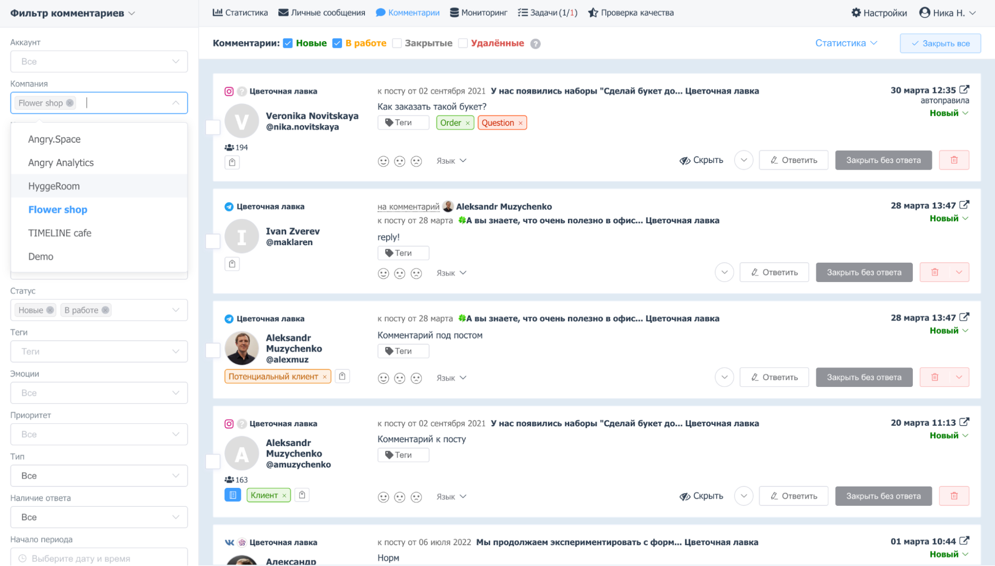 Итак, вы создали компании. Теперь все сообщения, комментарии и упоминания будут разбиты на группы.