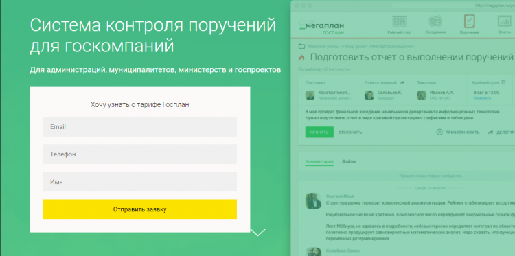Тариф Госплан нужен для работы государственных организаций. С другими тарифами предлагают попробовать бесплатную версию, но здесь сразу просят имейл и телефон. Наверное, там куча всяких непонятных мелочей, которые нужно обговорить. Цена: договорная.