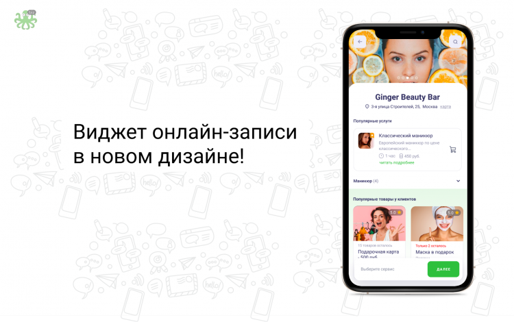 Мы на первом этапе глобальной трансформации виджета! Это в дальнейшем позволит продавать товары прямо через виджет, производить онлайн-оплаты и предоплаты, что существенно увеличит прибыль бизнеса. Это ближайшие планы, а уже сейчас виджет стал гораздо более стильным и удобным в использовании. К тому же, в виджете Вы сможете скрыть длительность записи, добавить индивидуальные поля и сообщения, сгрупировать записи по городам, самостоятельно кастомизировать виджет.