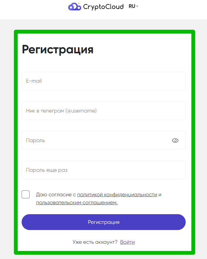 - Авторизуемся и начнем использовать платежные инструменты CryptoCloud.