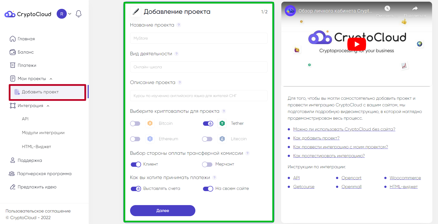 Платежный шлюз криптовалют CryptoCloud: обзор сервиса для приема платежей
