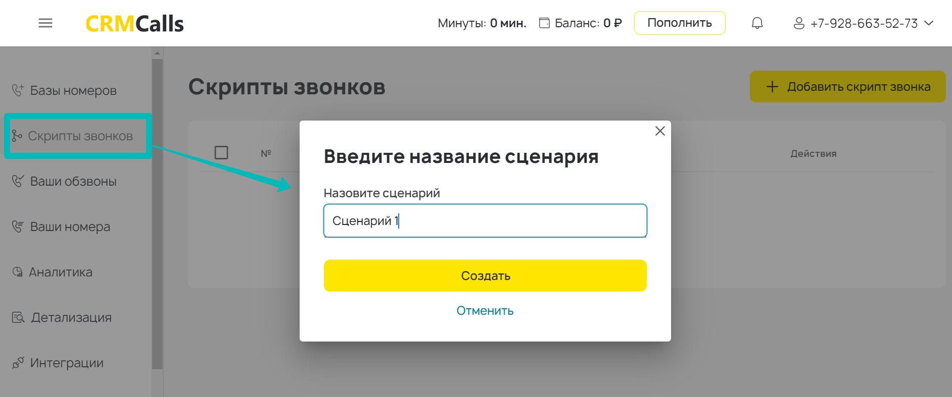 В работе сервиса нет ничего сложного. Для запуска обзвона холодных звонков выполняем следующие неторопливые шаги:
