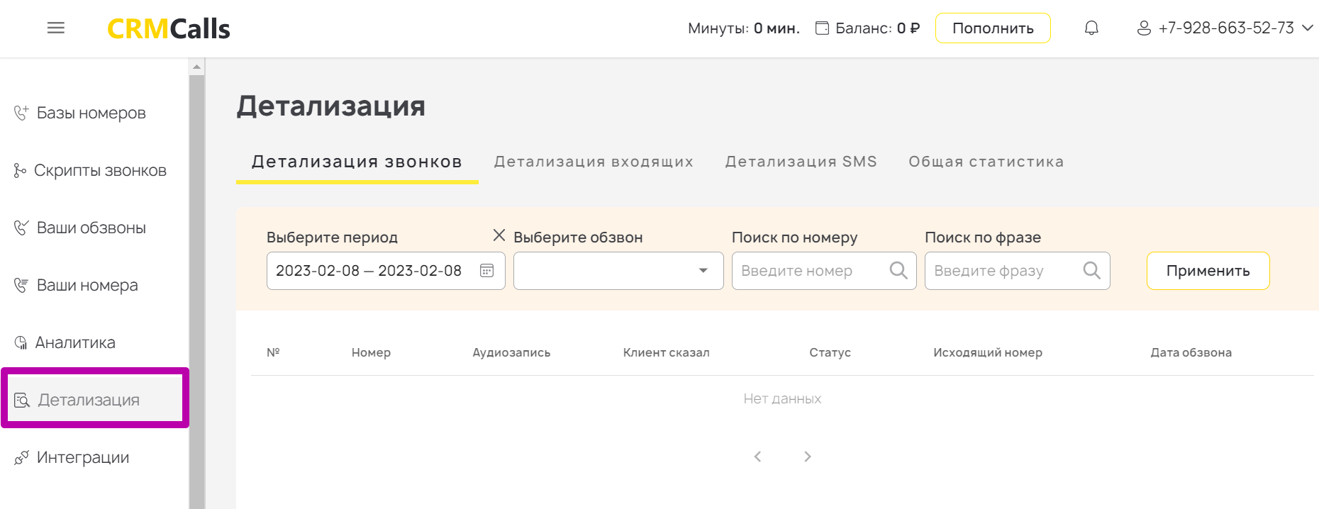 - Отдельный отчет со статистикой по звонкам – позволяет оценить эффективность кампаний не только на уровне обзвона, но и результативность каждого звонка.