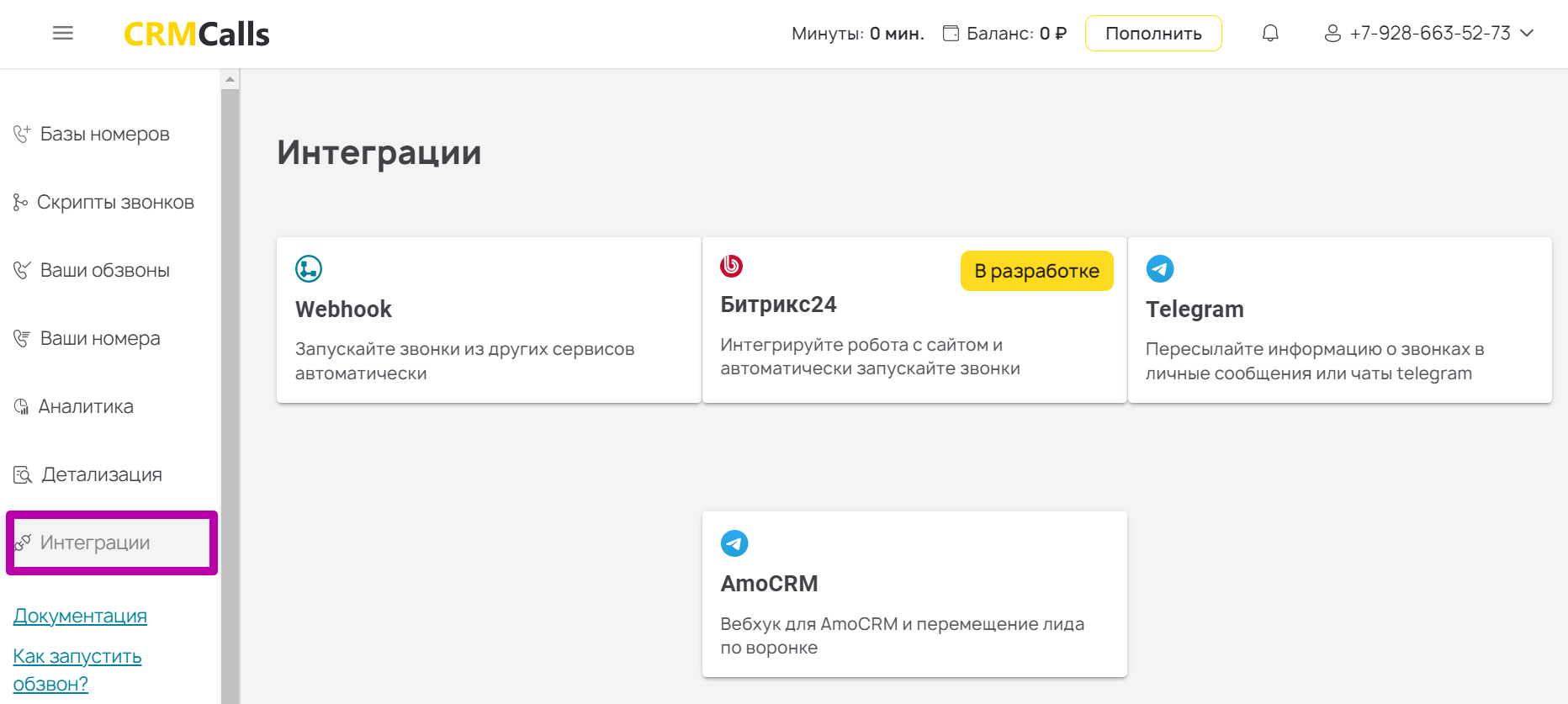 - Расширенные возможности взаимодействия со сторонними сервисами – CRMCalls предоставляет готовые решения для интеграции с популярными отечественными платформами и Telegram. А также нативный API для взаимодействия с остальными приложениями через веб-хуки.