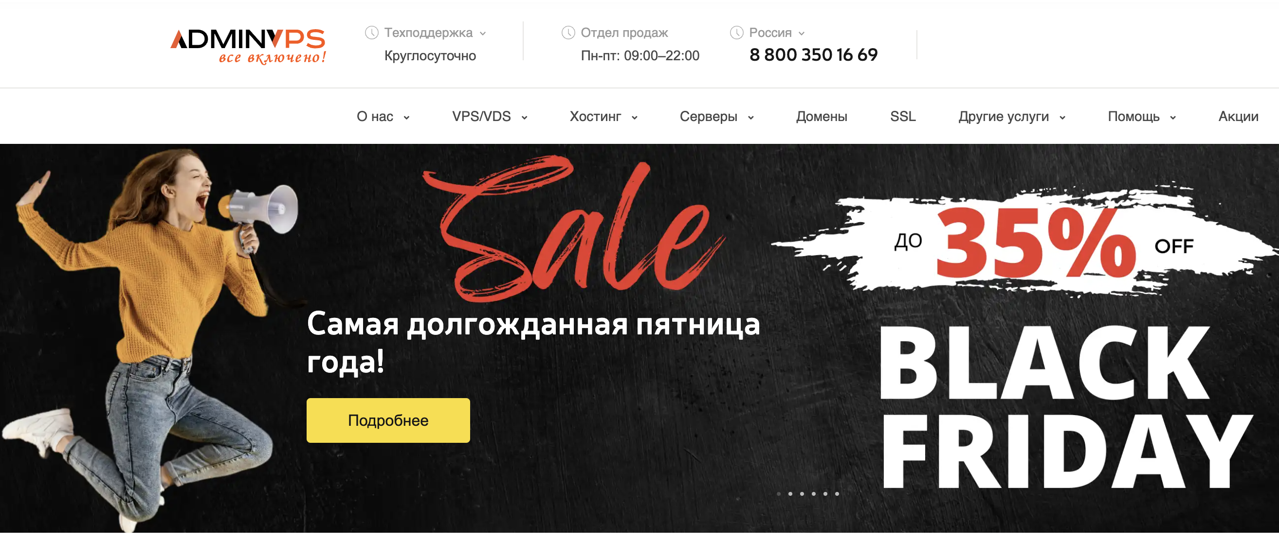 - AdminVPS — высокоскоростные сервера, дата-центр в Москве, высокая степень безопасности;