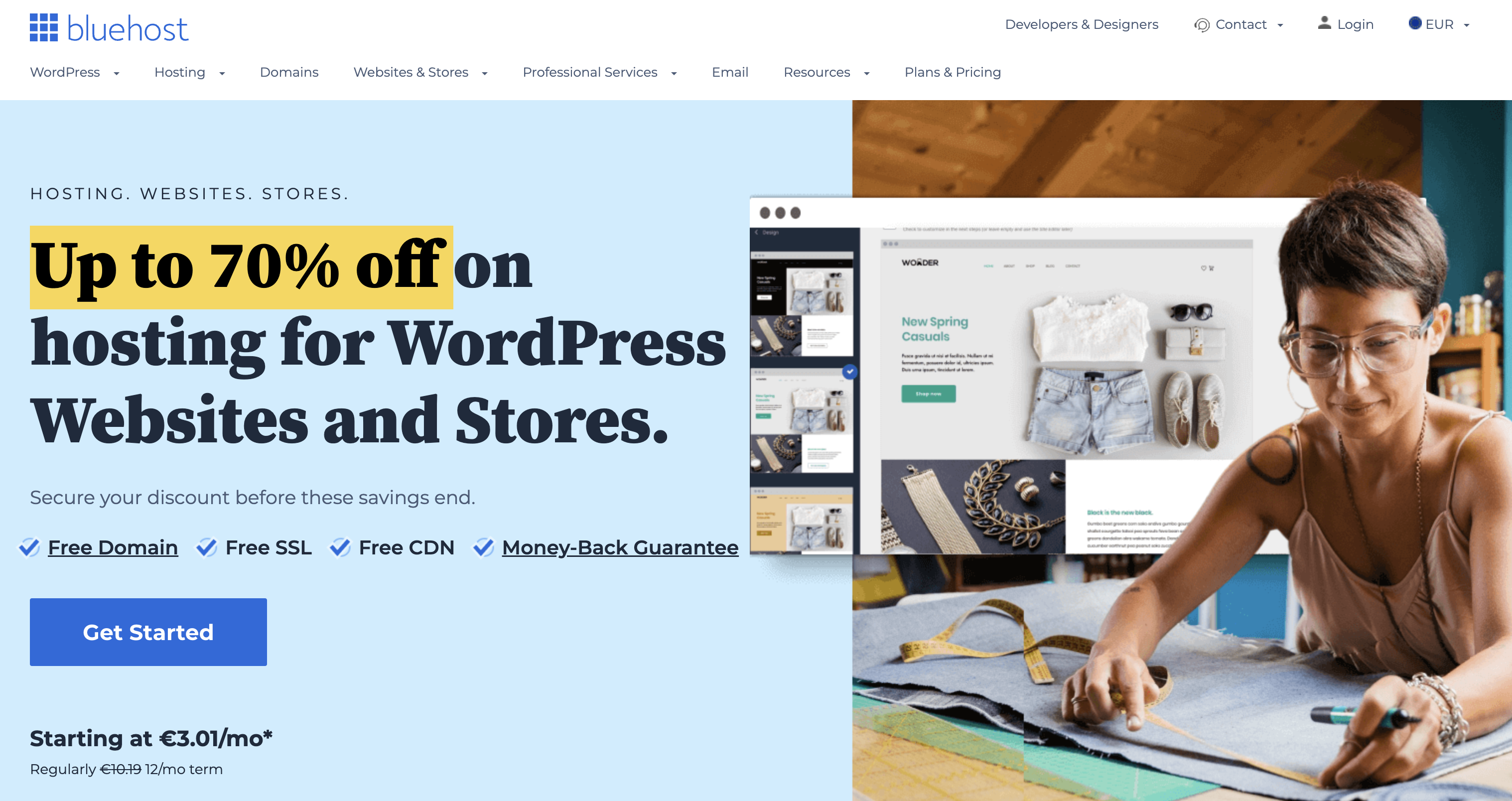 Bluehost предоставляет услуги хостинга и регистрации доменов.