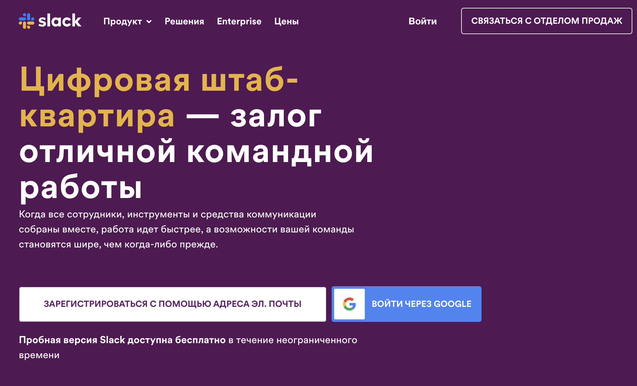 - Slack – корпоративный сервис для совместной работы и отправления файлов, системой чатов, интеграцией с почтой и удобным поиском;