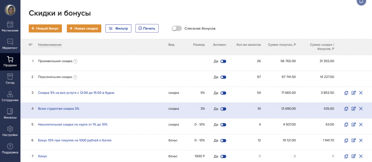 Поощряйте постоянных клиентов за их выбор вашего салона красоты. CRM «Арника» поможет настроить бонусную систему для разных сегментов клиентов всего в несколько кликов.