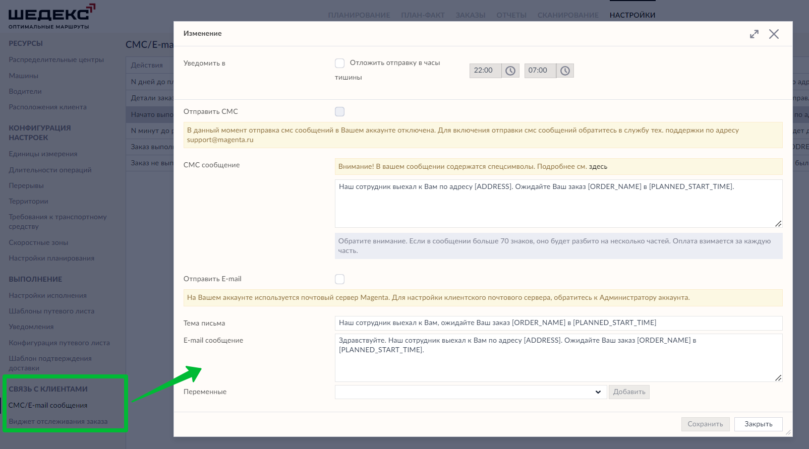 - Обратная связь – рассматриваемый сервис обеспечивает тесную связь отдела логистики с клиентами. Что положительно сказывается на уровне лояльности бренда. Для этого применяются SMS и email-рассылки, отправка которых осуществляется автоматический в зависимости от заданных в шаблоне параметров.