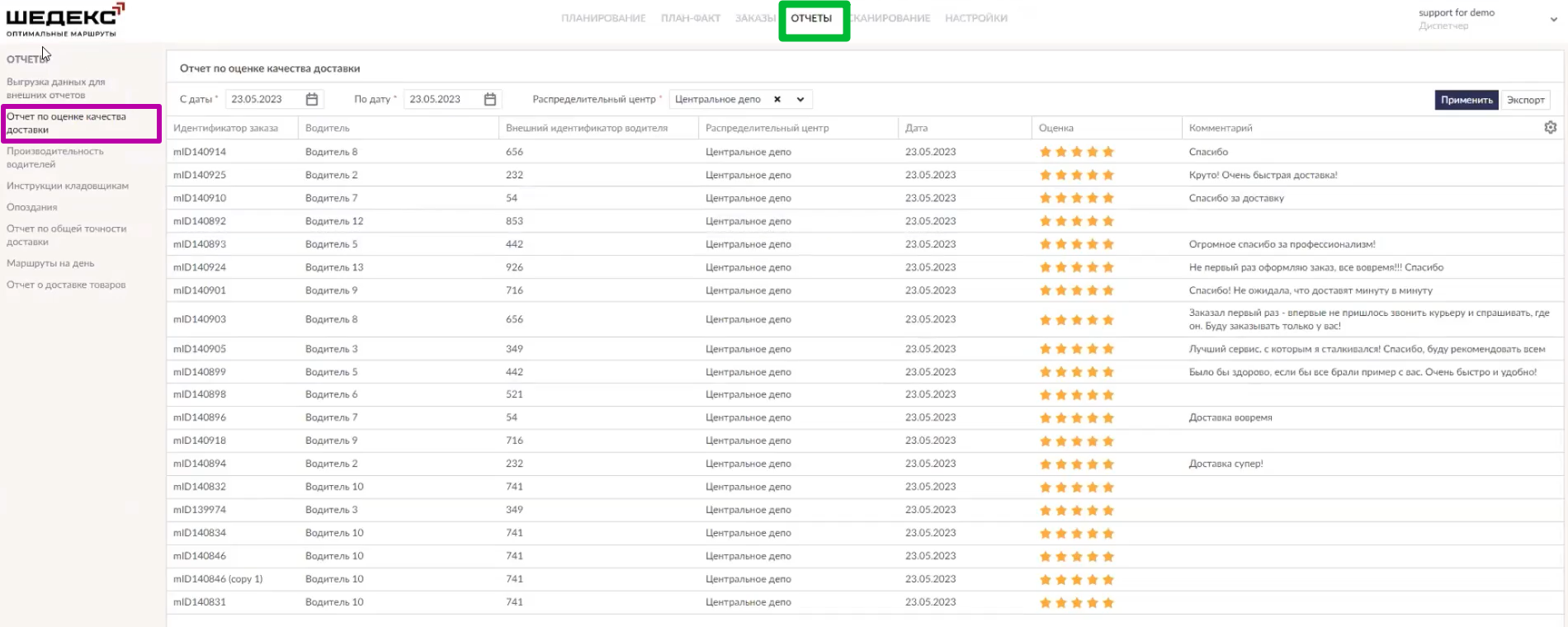 Также клиенты могут отслеживать передвижение своего заказа и оценивать качество доставки в специальных виджетах. Все проставленные ими оценки отображаются в специальном отчете.