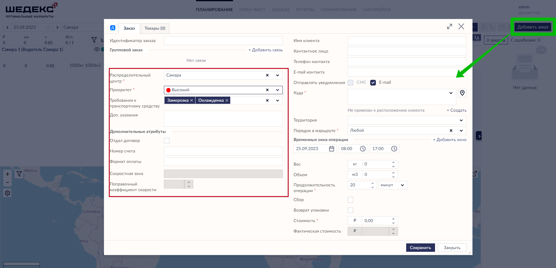 При этом сервис поддерживает ручное добавление заказов, импорт их перечня в CSV-формате или через интеграцию с CRM. При ручном создании в настройках заказа указывается приоритет доставки, требования к автомобилю в зависимости от правил хранения товара и другие параметры, набор которых можно изменить.