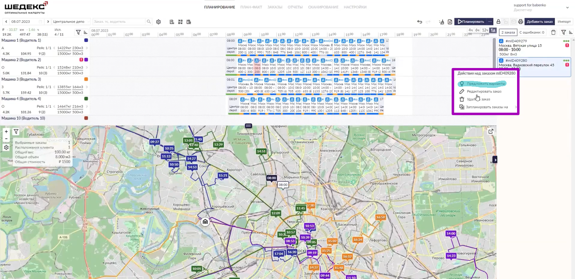 Каждый из предложенных маршрутов легко изменяется вручную. К тому же система «Шедекс» может предложить вам наиболее оптимальный вариант. Для этого достаточно зайти в меню заказа и выбрать соответствующий пункт.