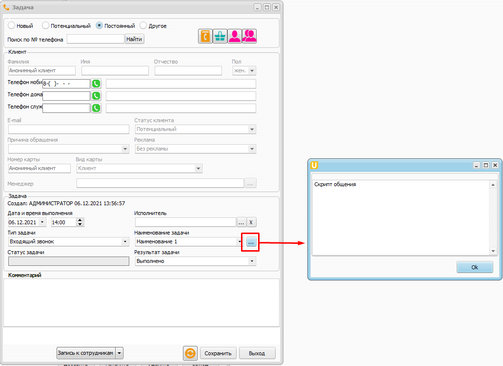 Скрипты задач в CRM-системе UNIVERSE-Красота