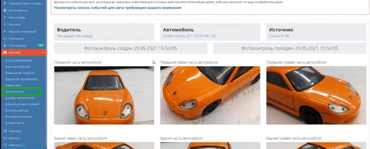 Для дополнительного отслеживания увечий, полученных автомобилями автопарка, предназначен недавно появившийся в составе платформы модуль «Фотоконтроли».