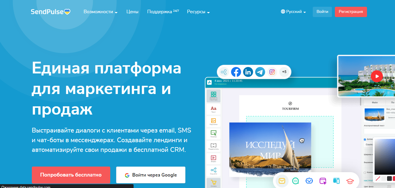 SendPulse — платформа для создания телефонных и e-mail рассылок. Пользователь может отправлять до 15 тысяч сообщений ежемесячно. Система пользуется большой популярностью среди предпринимателей и юридических лиц. На сегодняшний день ее используют более 200 тысяч клиентов. В первую очередь они ценят высокое качество и оперативную доставку сообщений. Возможности платформы SendPulse:
