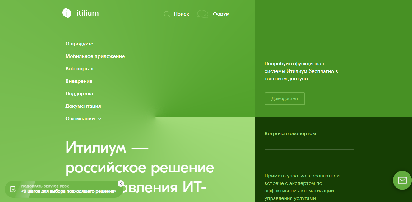 Итилиум - это первая российская система для управления услугами в сфере IT на платформе 1С. Разработана в 2006 году на основе электронной библиотеки знаний ITIL, содержащей весь опыт мировой практики в области IT-бизнеса, с описанием жизненного цикла предприятия в сфере IT, структуры, процессов, наилучших стратегий управления. Итилиум обращает внимание руководителя бизнеса на постановке целей и задач, ресурсах для их достижения и контроле показателей KPI. Автоматизирует Service Desk и управление бизнес-процессами: