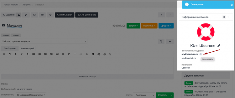 - Карточка клиента. Копирование контактной информации