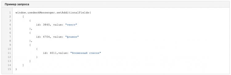 Эти параметры также можно передать отдельно с помощью специального внутреннего метода. При передаче значений система обновит дополнительные поля в карточке запроса.