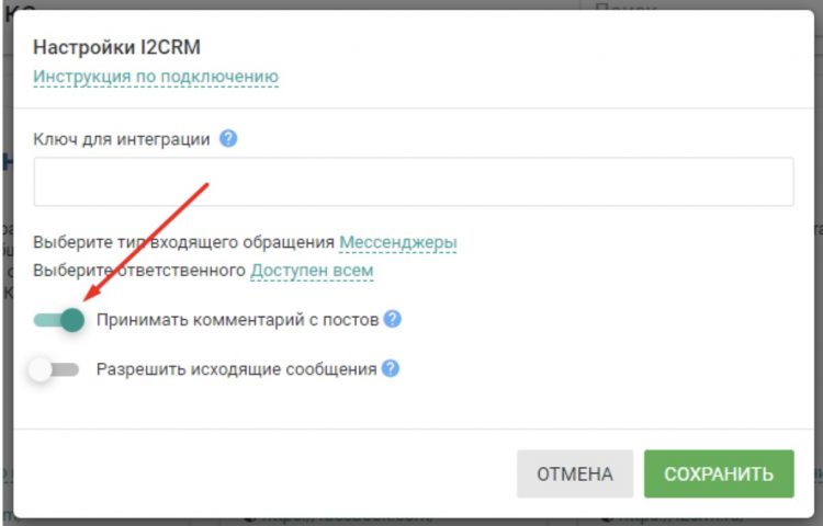 Для того чтобы подключить данную функцию достаточно включить тумблер в настройках интеграции: