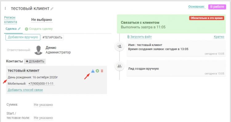 В EnvyCRM для контактов добавили новый тип контактных данных "День рождения".