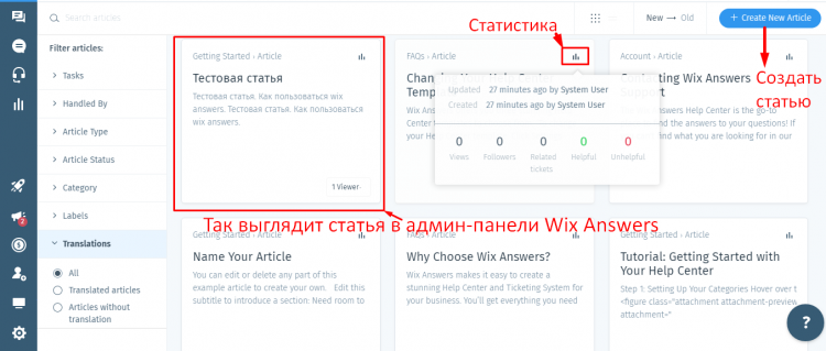 С помощью встроенной системы статистики можно увидеть, какие запросы чаще всего задают клиенты, какие статьи/руководства их больше всего интересуют.
