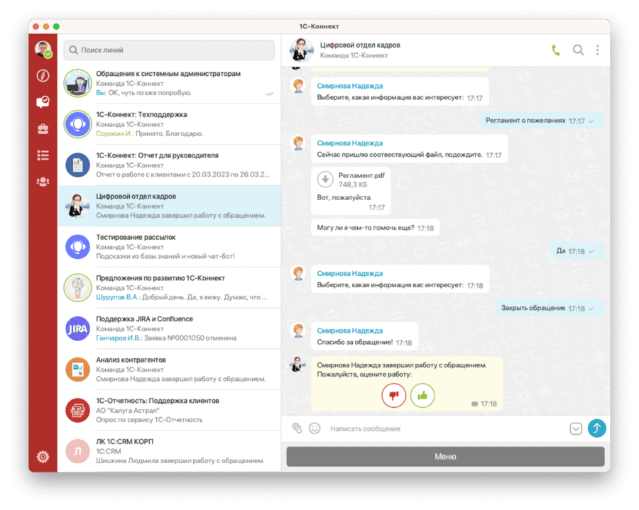 Нашим заказчикам нравится - они видят решение технических проблем. Для сотрудников организовали внутреннюю линию и чаты, решаем все вопросы. Пробуем из 1С:ERP рассылать отчеты в 1С-Коннект