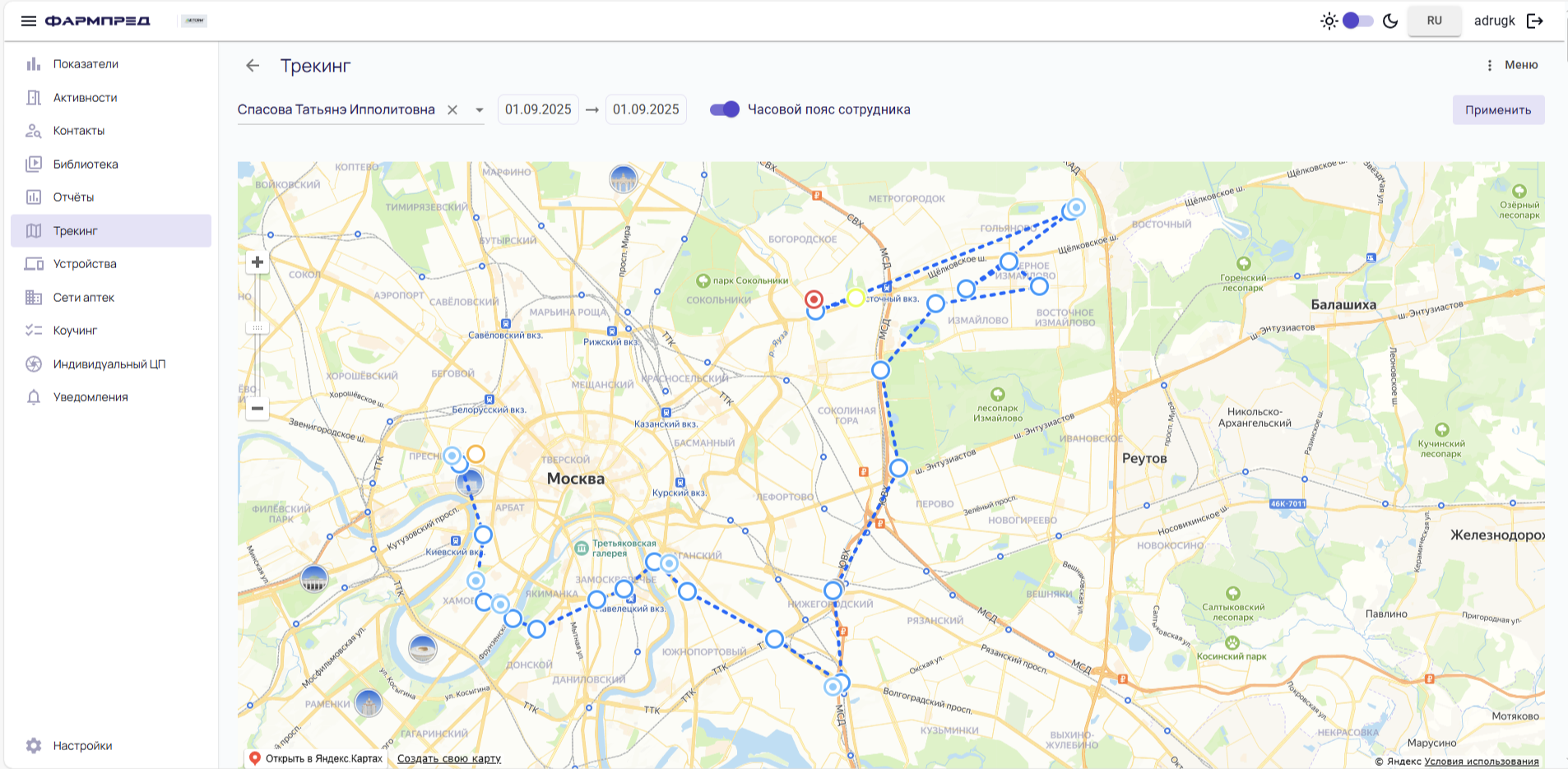 Система предоставляет полное отслеживание передвижений представителей в рамках законодательства