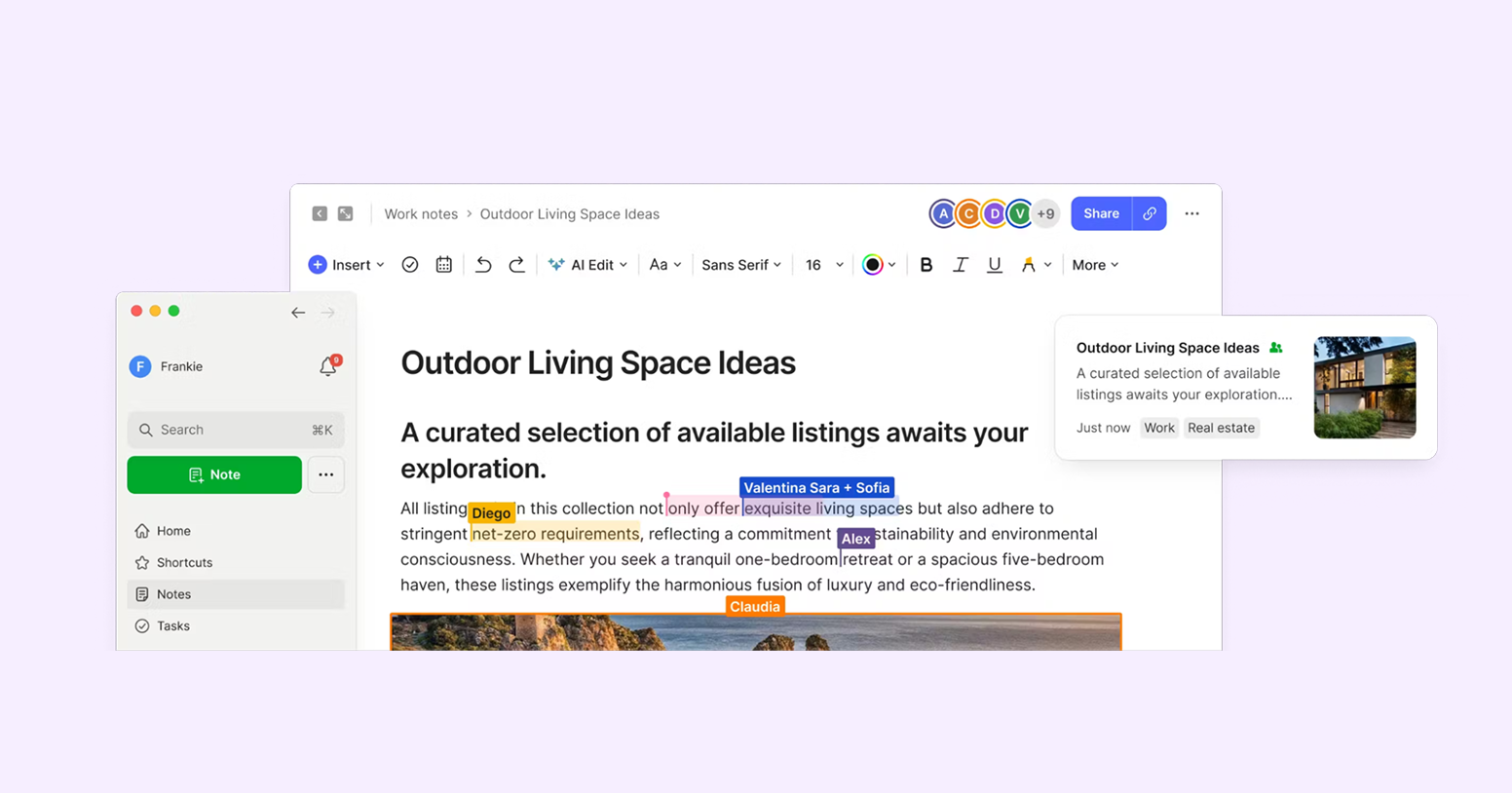 Совместная работа над заметками. Можно делиться записями с коллегами и друзьями;