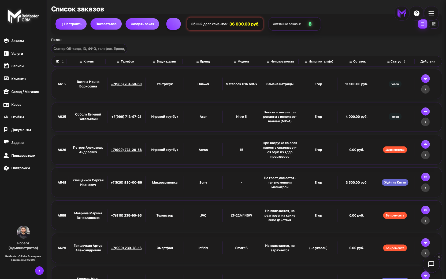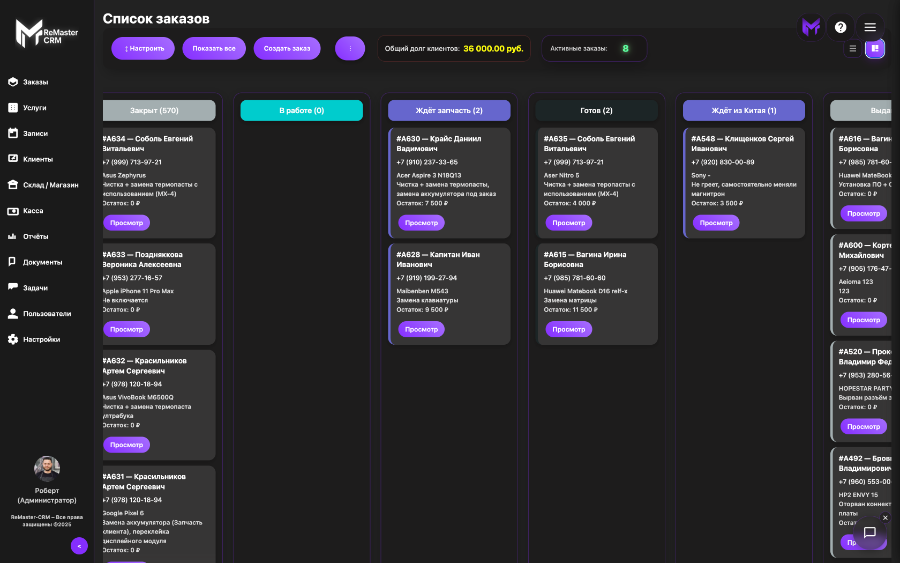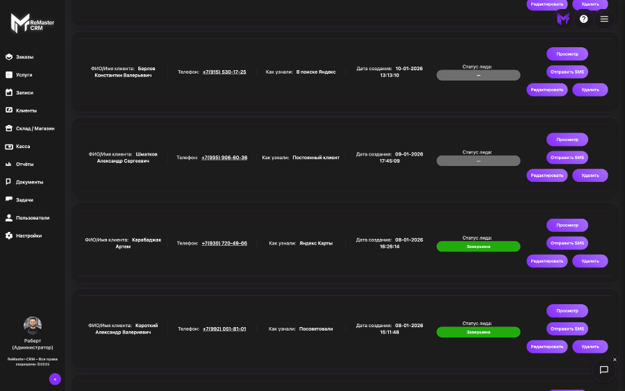 Функционал ReMaster CRM