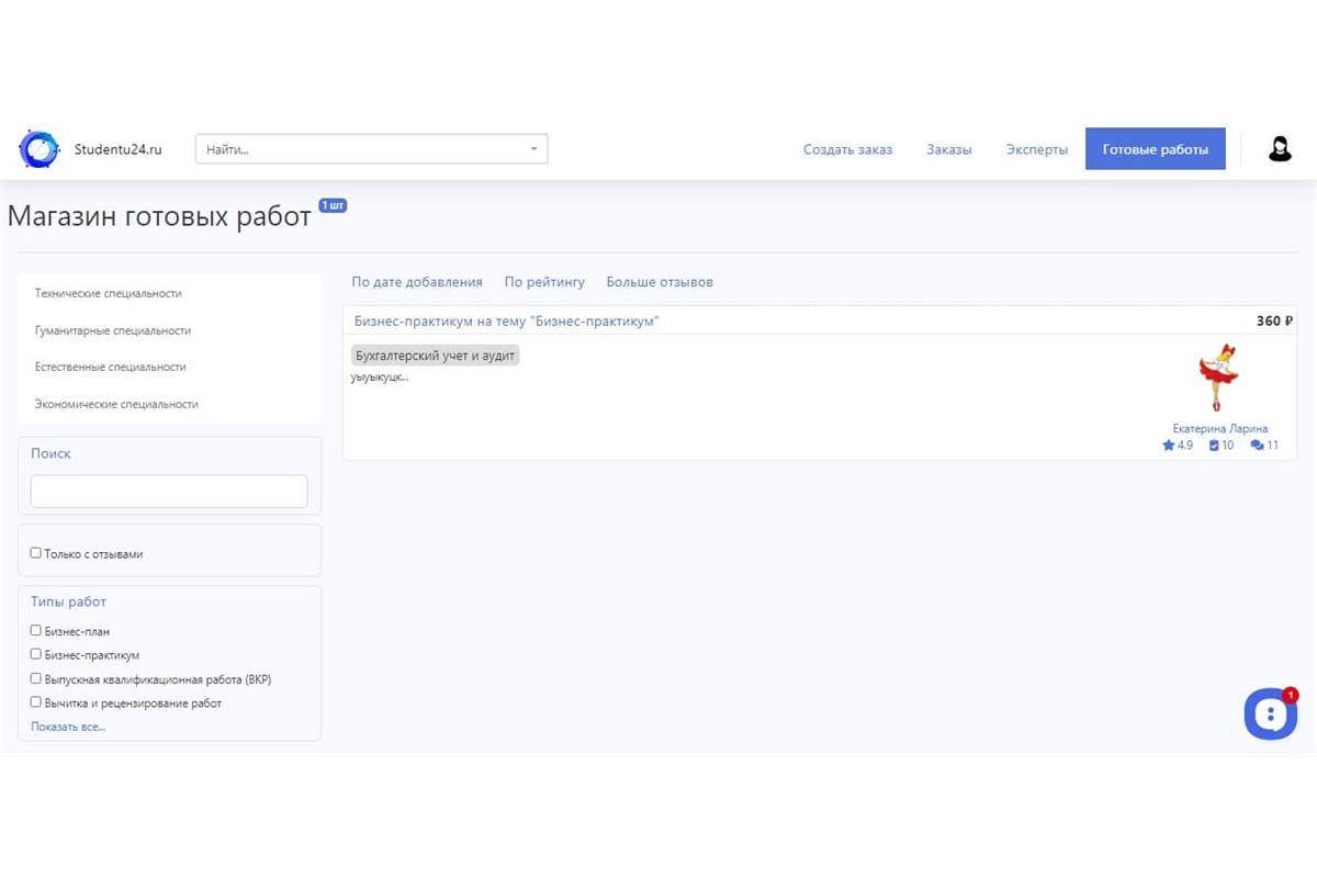 Магазин готовых работ. Отдельный раздел, где эксперты выкладывают уже написанные курсовые, дипломы, статьи. Покупатель может просто купить готовый материал. Это увеличивает оборот площадки и даёт авторам пассивный заработок.