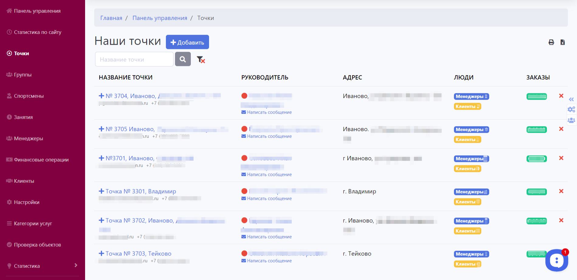 Заведение списка спортсменов (детей) — важная фишка, которая отличает эту систему от типовых решений.