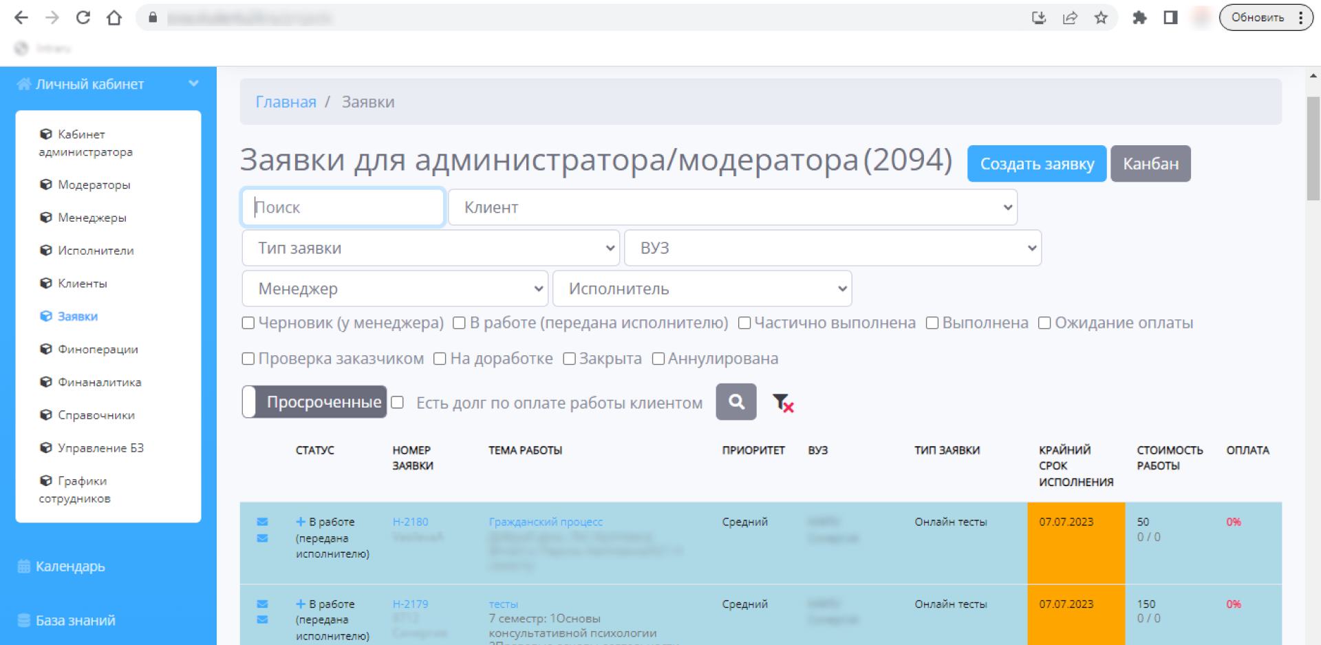 К нам обратилась небольшая компания из сферы онлайн-услуг (копирайтинг, помощь студентам). У них уже был опыт работы с нами — ранее мы делали для них полноценную биржу. На этот раз задача была проще, но не менее важна: создать внутреннюю CRM для сотрудников и исполнителей.