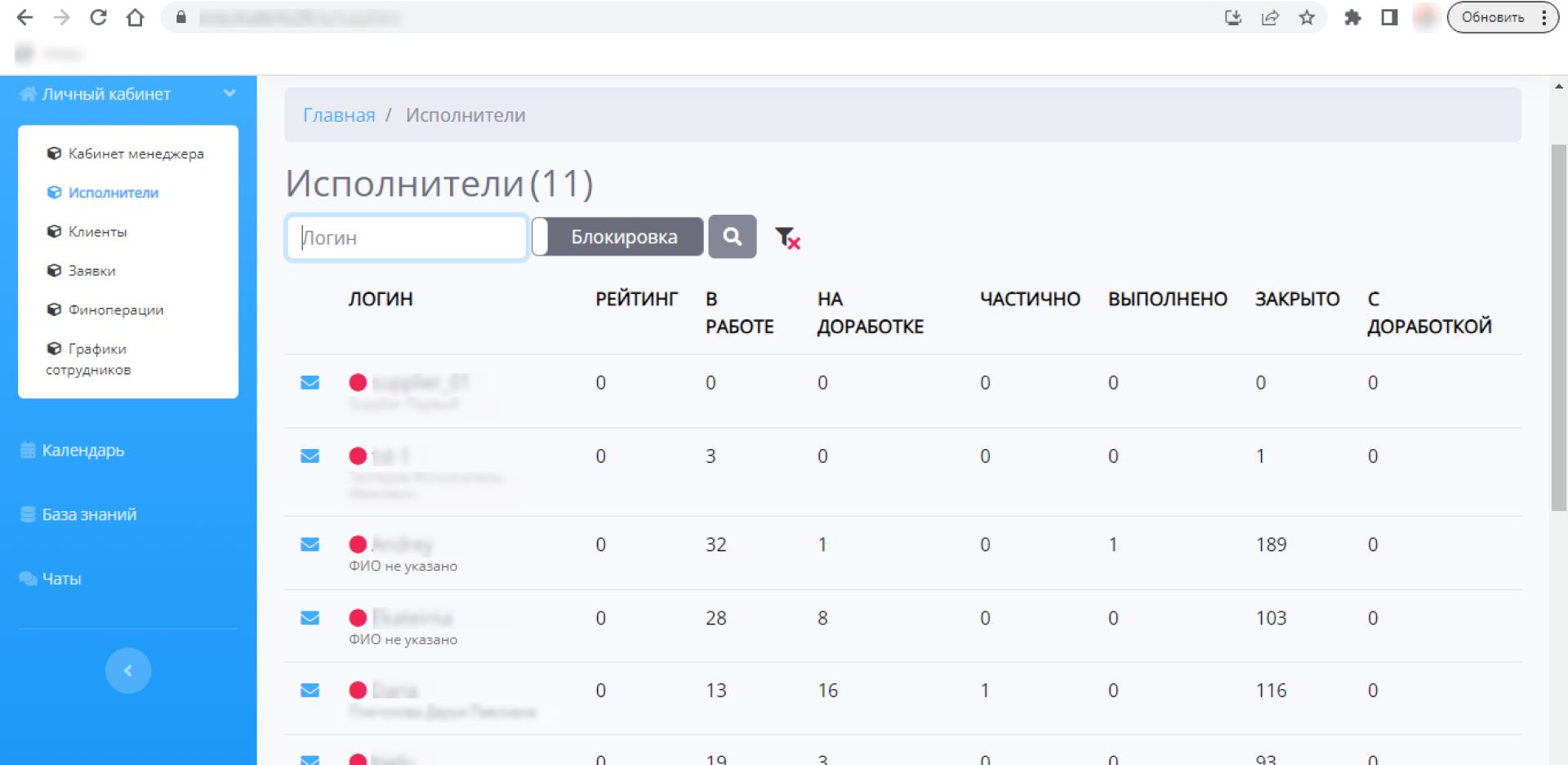 Менеджер — создаёт заявки, распределяет их между исполнителями, следит за сроками.